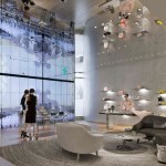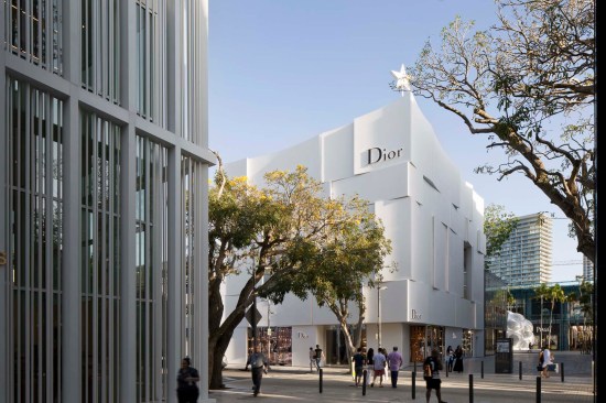 The project also respects its commercial nature. The building does not want to appear as an institution or a museum; and its generous shop windows open to the immediate public place. The drawing is influenced by the suggestive inspirations of Miami , images of sun and beaches along with an idea of dynamism, youth, and contemporary design. Architecture and Haute Couture unite in the common desire to seduce.