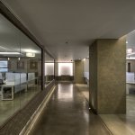 Glass partitions, wall paper, cement sheet of varying thickness and texture paint.
