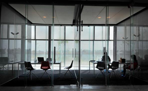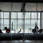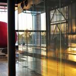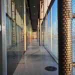Frit printed glass is used to not only dissipate heat, but also to play with patterns and enable changes in light transformation to make the building appear dynamic through the day. Grey on the outside and white inside, the multiple layers of the frit-printed glass creates a dynamic during the day and at night. The Lighting transforms itself with the change in the number of people occupying the plaza, and likewise at different times of the day. The Night lighting is dramatically different from the visual experience during the day, and is always unique with Interesting colours making the building come alive even at night.