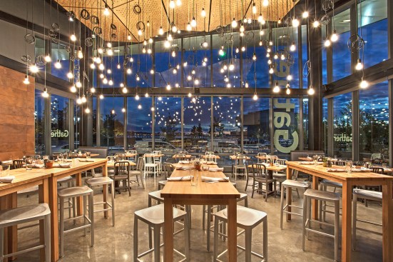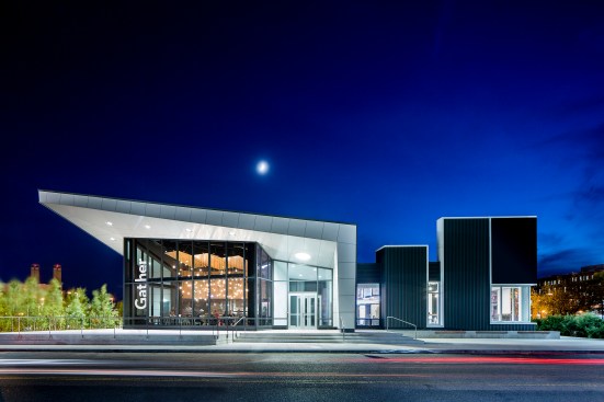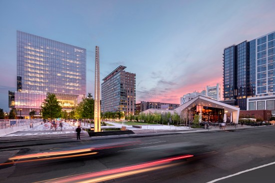 District Hall, located in South Boston’s Seaport Square, is a freestanding, city-sponsored innovation center, the first of its kind in the country. The single-story pavilion was also the first building completed in Seaport Square. Conceived as a fostering environment for innovators and entrepreneurs to exchange ideas and host events, the space has grown to become a multi-purpose community center where students study, runners hydrate, and working professionals socialize. Built on the site of the former waterfront rail yards, the building’s architecture is inspired in material and form by the industrial uses that characterize the area. The building includes a restaurant and café [Gather and Brew], an assembly space, a gathering space with seating and worktables, and a series of flex spaces. Outside, the adjacent park was designed in collaboration with Reed Hilderbrand Landscape Architects.