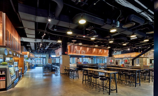 In developing the market concept, Michael Poris, AIA, studied contemporary food halls, and consulted with client Delaware North, a global food service and hospitality company, and food service expert Next Step Design. The owner, Olympia Development, charged Poris and the design team with creating the food hall concepts, from branding to the station designs. One of the project challenges was determining offerings that would appeal to everyday patrons and masses of people on event and game days.