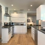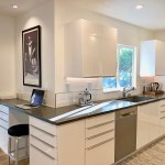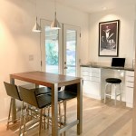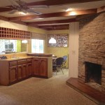 The Project was a Do It Yourself (DIY) remodel by an architect husband and interior designer wife who's parents were the original owners of the home. This was a heart felt rejuvenation of a family home from the 1950’s. The work needed to be respectful of the history there while also updating for a modern sense of space and activities. Work proceeded slowly over weekends and vacations in order to accommodate other life and work commitments. Though experienced with complex renovations for clients, they wanted to keep their own project simple and reasonably priced, so the couple used off the shelf and readily available materials, customizing them artfully and using minimal outside labor. A fundamental decision was to use IKEA kitchen cabinets, which required 1) renting a truck to haul them 200 miles from the nearest store; and 2) assembling 206 separate boxes of cabinet parts, drawer rails, special screws, etc Another fundamental decision was to cut a set of french doors at an existing window location. The structural change was minimal but the circulation change was profound, with direct access established from the kitchen to an existing outdoor patio that previously felt isolated. Interior openings were modified and the adjacent family room was remodeled too, editing and painting out the rustic woodwork and updating the original stone fireplace with a new colored concrete hearth. New oak flooring flows through both rooms. (The hearth was a DIY project as well, mixed in a wheelbarrow on tarps in the nearby living room.) A dark, woody, fluorescent lit kitchen and a wood paneled family room are now a bright modern space that dovetails into this mid century California ranch house.