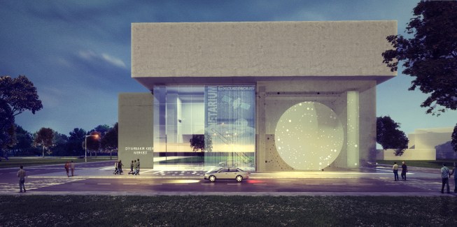 The Diyarbakır Discovery Center and the Islamic Science Museum, designed by Studio Vertebra are located close to the educational units, allowing to become the center of attraction in the city. Having many functions such as planetarium, activity areas, botanical garden, the project aims to create an education-oriented center in the area it resides. Diyarbakır Discovery Center and Islam Science Museum aims to create a new focal point in the region with its proximity to the main transportation hubs and center of the education units in the region with its 6.700 sqm construction area in total, 4.100 sqm of which is residence area in Diyarbakır, designed by Studio Vertebra, partnered with Chief Architect Gencer Yalçın, Master Architect Dilşad Öktem Aslaner, Master Architect Bahar Yücel Interior Architect Efe Kağan Hızar, which conduct interdisciplinary activities on a national and international level in the field of architecture, interior design and restoration since its establishment. Studio Vertebra has designed the main circulation of the project that is divided into education units in the west side of the Diyarbakır city center, having Islam Science Museum and Discovery Center as a structural set up that divides such two functions. The first two layers move in a single block while the second layer is shifted to make two axle consoles. As a result of this molar motion, a planetarium was placed beneath the console formed in the entrance, and the rest of the console acted as a marquee, forming the main entrance and foyer ceiling. While the main entrance of the structure is at the side of the Discovery Center Islam Science Center has its own entrance. While Discovery Center has a wider rhythmic gap in the front, Islam Science Museum has more frequent gaps and submerged arc and other entrance. The monumental entrance in the center of the high submerged arch of the Islam Science Museum has been depicted with muqarnas image. The entrance of the Discovery Center is defined with a planetarium. The entrance of the Discovery Center allows for general circulation of the museum and provides a direct access to temporary exhibition halls and planetarium. This section includes cafeteria and sales units in connection with the foyer. While the botanic garden and activity area situates in the second floor of the structure, the telescope of the museum stands here. The middle area is designed as a space that can change, transform and combine as required by the exhibition requirements. Studio Vertebra preserves the cultural integrity of the structures in its design decisions and aims to provide symbolic value out of the architectural references of, Diyarbakır. The rhythmic fractures within the integral front distinguish the structure from its environment and provide a different perspective from each angle with its relation with the light. The natural stones, glass, and illuminative materials are chosen to provide this symbolic impact.