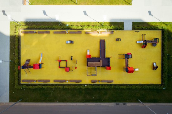 The concept was entrusted to Massimo Iosa Ghini’s Italian studio of architects, whose insights provided the immensely wide scale of the monotonous Russian suburbs with more “human” and distinctive traits, by using bright accents on the exterior facades and creating common spaces for collective use, whereas Russian firm Mosproekt-3 dealt with the technical aspects of the project.