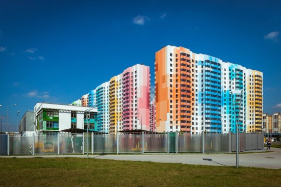An effective and creative “colorful layer” on the facade of the buildings provides a tasteful contrast to the monotony of Moscow’s suburban areas while open courtyards improve perception and quality of life and offer a great number of recreational functions.