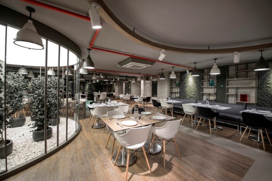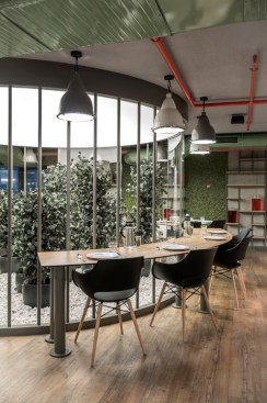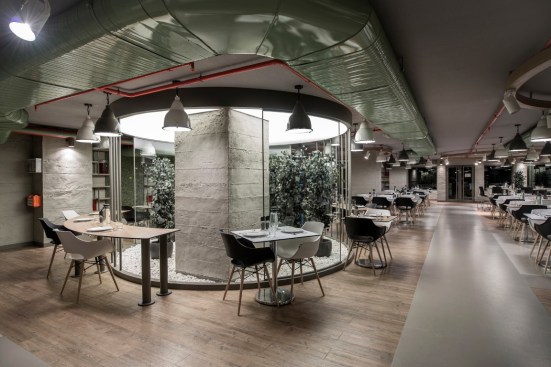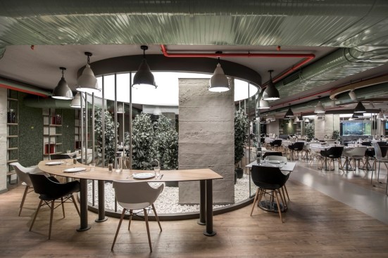 Located in Maslak, one of the most important business centers of Istanbul, Dogus Maslak Restaurant was designed by Caglayan Architects as a sophisticated and green space where theteam of the company can escape from their intense work schedule and get socialised.