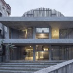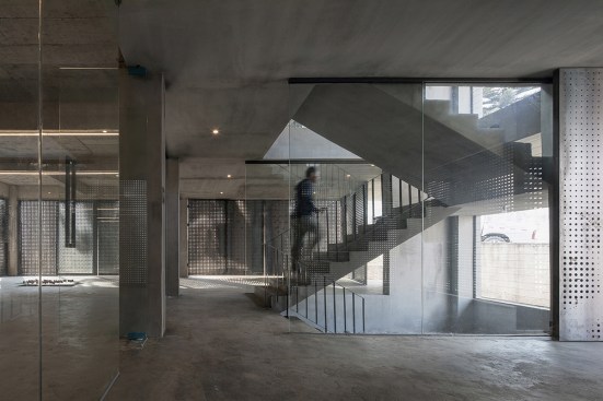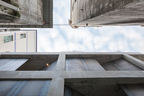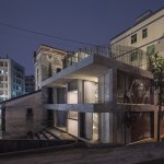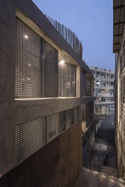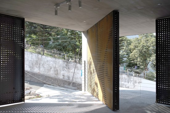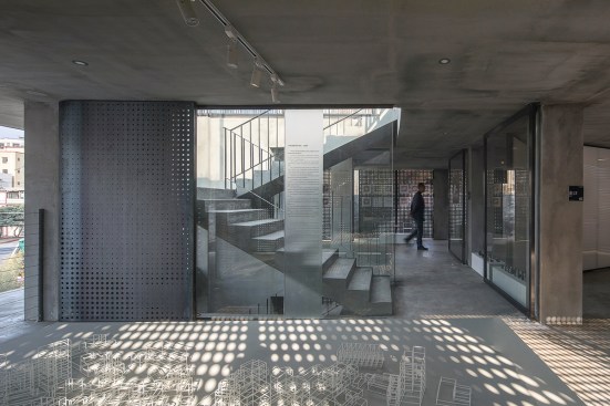The Dom-Ino Pavilion becomes a flexible platform for communications between different groups of people and different cultures. The ground floor has a studio, which can be used as the client’s office or public educational space. The newly added 16 rotatable doors on the second floor can enclose and split space for various activities, like art exhibitions, community meeting and small performances, etc. And the roof terrace serves as a community social area.