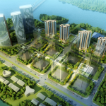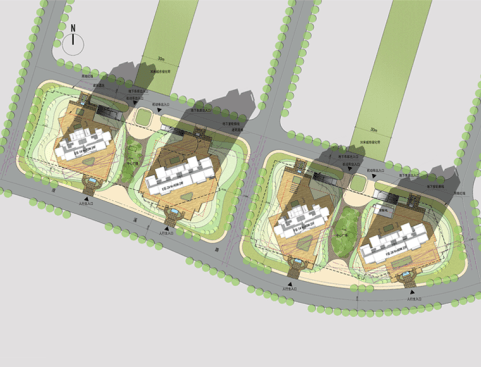 The project is located at a peninsula stick in lakewater, the peninsula will become Yixing City’s new CBD Area. Project sites are two lots, and on each there is a 30m wide city green zone. Hence, the design challenge lies in this separation of construction sites, and each independent small lot has different natures.