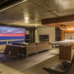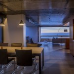 The unit’s low ceiling presented the main design challenge. At the highest point, the ceiling is less than eight feet. In order to turn the limitation into an advantage, the ceiling became a major feature of the project. The original popcorn ceiling was entirely stripped to expose the original concrete formwork. The design-build team added a clear finish coat to give it a reflective sheen. The glossy concrete surface extends through the entire condominium from the master suite to the living room, tying the large unit together and giving it a sense of space. The concrete has remarkable character, revealing the original process of construction. One can identify the joints in the formwork and the variations in the concrete mix.