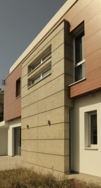 The challenge to create two different and independent dwelling units on the same site was fulfilled successfully because they follow the same design philosophy and are consolidated visually. Morphologically the houses are characterized by orthonormal, parallelepiped volumes, lined with wood panels which stand out from the primary white volume and reflect functionally the bedrooms. The exposed concrete elements come to add strength and simplicity in whole, functioning “compensatory ” in the warm mood that the large wood surfaces give. The design course was determined by the dedication to the functionality, when at the same time many bioclimatic elements were included in order to achieve thermal comfort for the users.