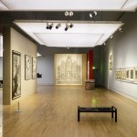 The light-diffusing fabric’s variable height creates spatial transitions from one exhibition theme to the next, without producing an effect of separation. The result is that the space is experienced as a whole. Our minimalist use of partitions structures the exhibition space, while supporting differently themed spatial situations in which the artworks are viewed. The lighting conditions—arising not least of all from the interplay of the light sails, the framing outer wall of the gallery and the partitions – offer an array of experiences through the senses which structure the dialogical perception of the prints by Dürer and Kentridge.