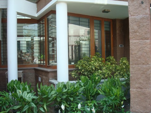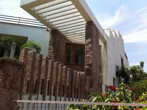 This residence is located at the sub urban zone with houses located close by with no great scope of views. Hence, one way to give the house a good ambience was to provide views by designing many courts inside the house. The window grills are avoided to provide a better view to courts.