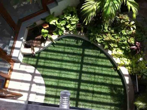 When one enters the house, the visitor rather goes on a small tour through the landscaped court than having to look at the metallic vehicular drive way.