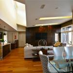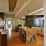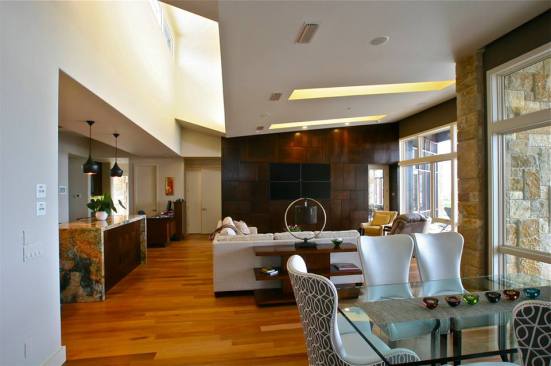 Many of the inside walls are textured with exquisite limestone and high-end wood paneling. This enabled the interior to be blended with outside materials and give natural color to the walls. It was important to the homeowners, that the home contain an open floor plan and flow with the rolling hill country in the background.