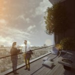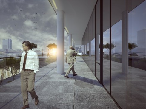 Transition spaces have been created between the office areas and vertical circulation shaft that are also enriched by open, double height gardens in which the staff can enjoy the view and relax. Four of these double-height floor gardens are distributed into the office block where they are used as vertical volumes helping the environmental control of the building as well as maintaining physical and visual relationship between the interior and exterior environment.
