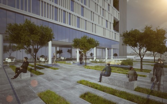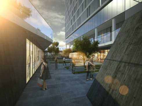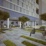Ground floor performs as a lobby allowing access from the garden and the roadside. This high ceiling interior space serves the entire block with reception functions, waiting areas and common meeting rooms. Social areas including commercial units, cafeteria and fitness hall are placed on the -4.00m level and a common courtyard enable these functions to be linked visually and physically with the rest of the building. This courtyard has been designed as a common area where office users and public function is intersecting within open and semi-open spaces.
