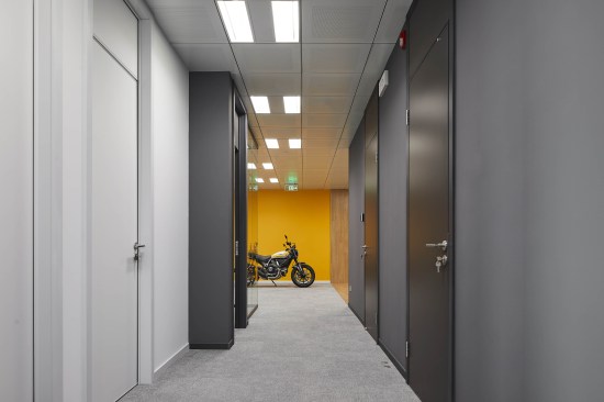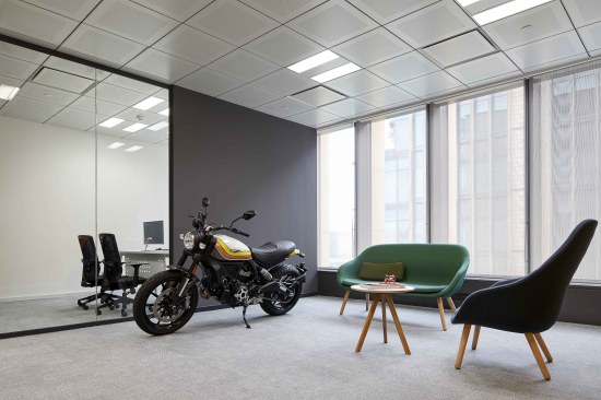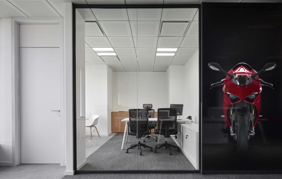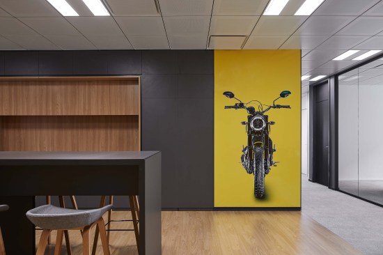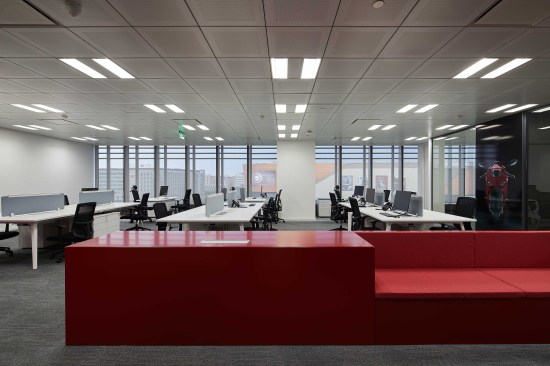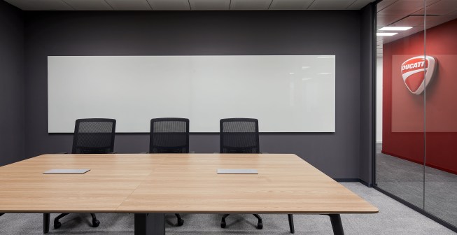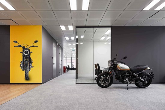 The design solution for the 400 sqm space evolved from the desire to create a functional yet playful environment that befits the Ducati image. Equally significant was the company’s desire for an open, flexible and collaborative work environment for its employees.