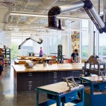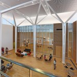 Formerly a building housing the university’s performing arts programs, it is a complete retrofit into a visual arts building including studio spaces, galleries and art history classrooms. The dramatic new lobby features splayed columns that support a new clerestory window and also are a nod to the building’s mid-Century design roots.