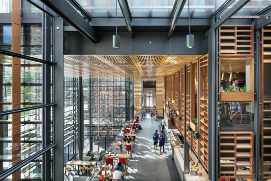 Duke’s Richard H. Brodhead Center for Campus Life Campus Student Union provides a vibrant space for students to socialize, creating 10,200 sq m of space for this prestigious academic institution. The design preserves the integrity of Trumbauer’s 1920s design, which is renovated to its original state. As well as restoring the gravitas of the esteemed historic structure, the building provides a frame for the new atrium, which replaces the existing core.
