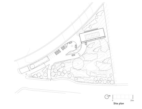 It’s located from north to south in the highest part of the plot, taking advantage of the best views and the passage of the sun. The building is slightly supported on the ground by a metal structure that keeps earthworks to a minimum, reducing costs and, above all, respecting its immediate context.