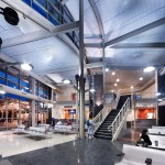 The two-story, 10,300 Sq. Ft. facility serves four and one-half million of DATA’s five million annual passengers. The site boasts twenty canopied bus bays, six parking spaces for taxicabs, disability parking, short-term parking, “kiss and ride” drop-off, and bicycle racks all organized around a transparent, day-lit passenger terminal that includes ticketing, waiting, package express, a driver’s lounge, security, and space for future amenities. The high performance glass enclosed open environment encourages social interaction while maintaining safety and comfort for waiting patrons. There are also provisions for a future bridge connection to a future light rail system, further connecting the City to the region and beyond.