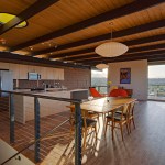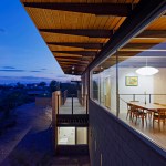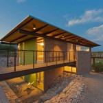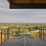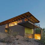 The DWC House responds to topography, program and views to create a residence that is simple in plan yet layered with experience in sequence and section. Designed for an engineer with a love for Architecture and Cars, the concept carves into the hilly site from the East to create a multi-story scheme that steps with the terrain while disturbing the fragile site as little as possible. An access drive is established from the West for guests that climbs up the hill through a stand of Foothills Palo Verdes to arrive at a carport made from extra steel “drops” of the primary structure. A bridge connects this area to the house to begin to convey the multiple sensory experience of being on, being under and finally hovering over the Sonoran Desert landscape. Designed on a tight budget, the house relies on basic materials of masonry, wood, steel, and glass to create a warm and inviting environment to celebrate and enjoy life in the Sonoran desert. This Catalina Foothills house was located on the site to make the best possible combination of program, views, orientation and topography with the least amount of site disturbance. Program: 1,837 SF livable space – 375 SF outdoor deck – 670 SF double height garage – Open design with a variety of spaces and views – Minimize site disturbance – Open kitchen, dining, living concept – Ample outdoor areas – Shade at glass and deck areas – Three Bedrooms, Two Bath – Two car garage that can be expanded with car lifts for four vehicles