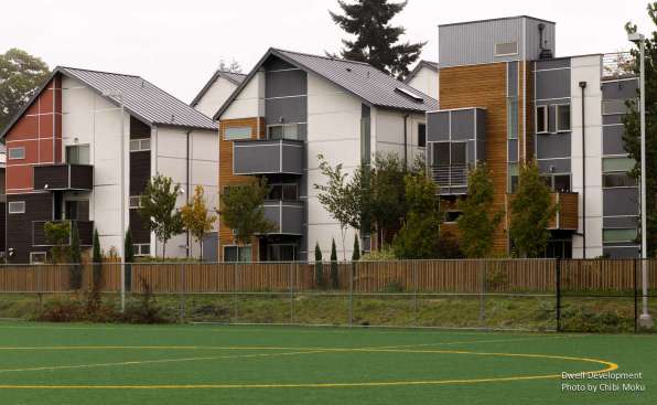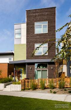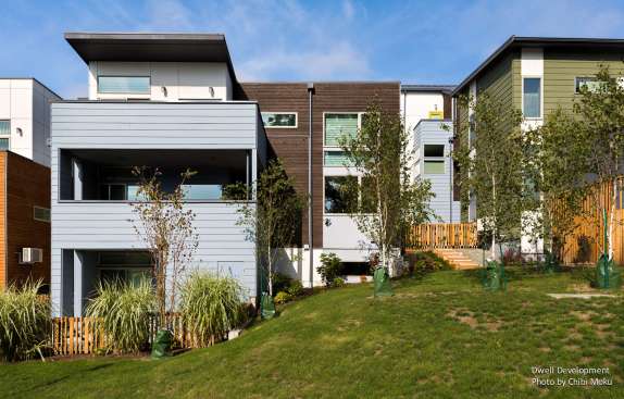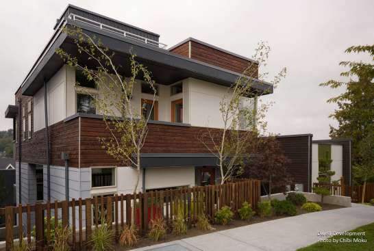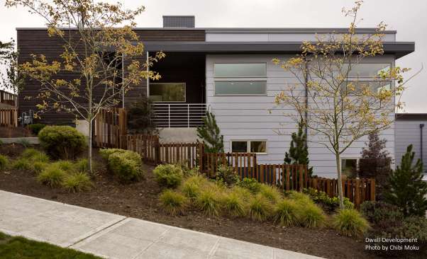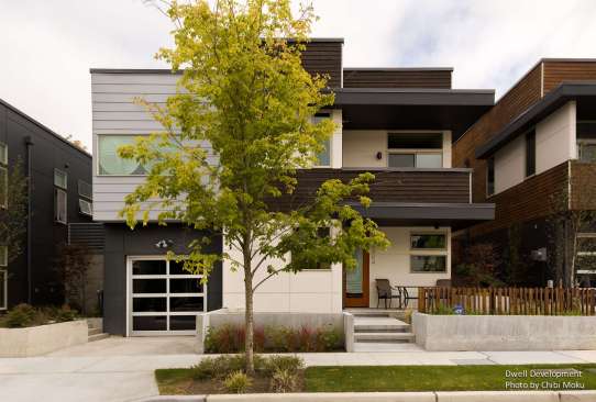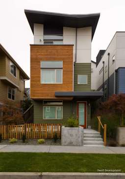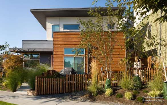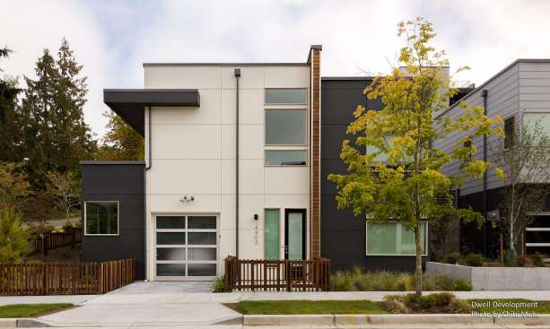 Seattle based design & build firm Dwell Development, LLC builds beautiful homes, each one different than the last. They begin with a unique floor plan and intelligently incorporate light, air flow, warmth and a fantastic array of amenities and finishes to create a home that is healthy for both body and mind. These elements combined with Dwell Development’s dedication to designing homes that are complimentary to the land they sit on and neighborly in their orientation sets them apart in an otherwise copy-cat market. Rainier Vista’s micro community of 42 homes embodies these principles beautifully.