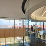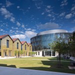 The E.J. Ourso College of Business at Louisiana State University is a glass and steel ‘academical village’ for business education. The courtyard site plan and building forms are contextual— recalling the sloped roof pavilions and arcaded courtyards of the adjacent historic campus. To illustrate a forward looking aesthetic that embodies the mission of the school, which is to foster business innovation in Louisiana and the Gulf region, these traditional architectural forms are constructed of contemporary materials and details. The pavilions are clad in ceramic coated translucent mirror glass and the rotunda is clad in a bronze solar screen resulting in a composition of forms that are ephemeral apparitions of the original campus. This composition reflects the strong heritage of the campus while looking to the promises of the future.
