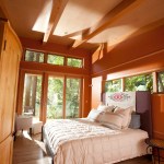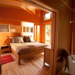 The other pods provide more secluded spaces, with each structure containing two side-by-side bedrooms and a full bath. Shugar divided each pod into “dry” and “wet” zones.