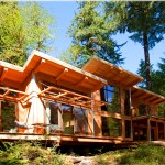 The property is located along the north bank of the McKenzie River and features old-growth trees and a breathtaking view of Eagle Rock, a basalt column rock formation at the river’s edge. Located in a Douglas Fir forest, the building site was carefully chosen to minimize the removal of existing trees.