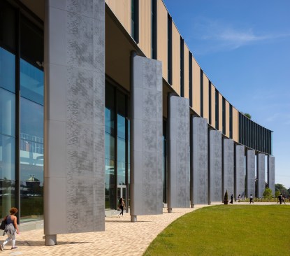 Replacing the School’s 1970s-era facility, the new building reflects the energy and spirit of the School, offering a framework for creating a strong academic community, while also embodying the University’s commitment to sustainability. In support of the University’s programs, services, and activities related to business and management, the building includes state-of-the-art learning, study, and collaboration environments consistent with the School’s high academic standards and aspirations. With its central atrium and other inviting public spaces, the building nurtures community engagement and provides a social center for the larger University community on the new West Campus.