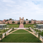 The new garage is the connective tissue for all of the buildings on campus. It also plays a prominent role in the visitor experience. The overall goal of removing cars from the landscape and creating comfort, safety, and beauty for pedestrians was paired with the goal of creating a welcoming presence for visitors to the campus when entering campus through the new parking facility. As such, it has been carefully crafted to uphold WUSTL’s prestigious reputation, designed with the intention of making visitors and other users feel welcome and comfortable when coming to campus.