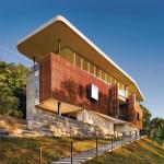 The East Windsor Residence is the answer to the question, “Does limitation yield innovative design?” Presented with a 200-foot-long triangular site and a 40-foot setback, architect Kevin Alter devised a sliver of a house that gently embraces the site’s shape. The three-level home features the kitchen, living room, and master suite on the top floor, with secondary space sprinkled across the other two levels. Its warm but contemporary palette of materials includes oak, marble, limestone, and a 16-foot ipe shading screen. “[The home] has a lot of nice moves to it,” one judge declared.
