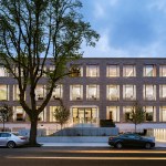 Reusing much of the 1970 building’s concrete frame, Eaton House is designed to be a building of its time while respectful of its historical context, but re-envisions the exterior enclosure in linear coursed stone, clear vision glass, and handmade cast glass bricks.