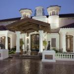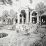 Orlando ‘Great Gatsby’ inspired custom home on 6 acres on lakefront. Three levels, stucco and ceramic tile, wood frame on block basement, synthetic and natural materials for trim, moldings. Eclectic period style. See video here: https://www.youtube.com/watch?v=lCb1xpl1UwE&t=24s