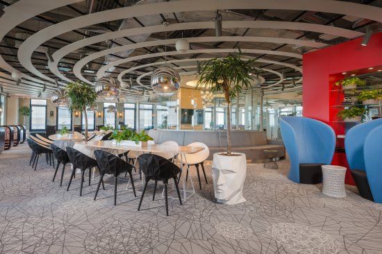 In all aspects, the office design accentuates the high technological capabilities of its resident company, harmonising effortlessly with contemporary styles and the original, yet practical, approach to organising working environments. Influenced by Western design, which prioritises areas for recreation and entertainment above the classic office layout, ECommPay’s office is multipurpose. In the open lounge on the 12th floor, for example, weekly corporate meetings, where management discuss corporate news and achievements, are held and educational lectures are broadcast to all global offices. However, the lounge also plays host to cinematic evenings and team celebrations of special events. Employees are welcome to remain after work to socialise, and on Friday evenings, if the week was successful, the company bar is opened. The office building contains an exclusive fitness centre, complete with power and cardio zones, as well as massage and spa facilities.
