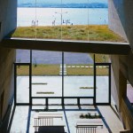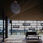 Light, wind, water, heat, earth, and plants were considered when designing the building in a relationship with the lake. The wind flows from the lake into the rooms – creating a winding path along the main corridor on the east side. The light reflects from the lake’s surface into the rooms. Rainwater is collected from the roof and distributed into the ponds on the western side. This collected water evaporates and creates a cooling breeze that enters the building. During winter, heat is stored in the earth walls, warming up the rooms at night, additionally, the soil also works as a humidity control mechanism.