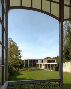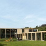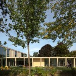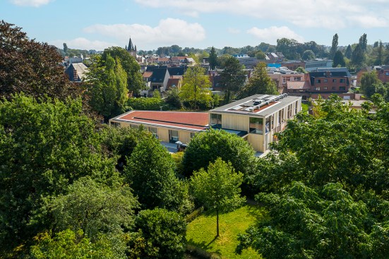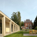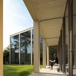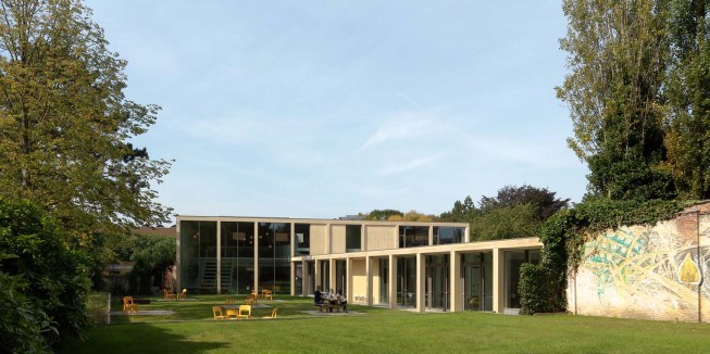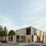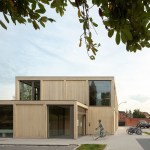 The new community center of Edegem (Belgium) is a multifunctional, flexible and open building which is entirely made of massive timber (CLT). It is harmoniously integrated with the existing monumental exhibition center Huis Hellemans and its garden. For the residents of Edegem it’s an open house that invites people to meet, work, enjoy, read and get inspired. The open spaces that are now used as a library can be programmed with flexibility over time consisting of old and new media. The building reinvents the small-town cultural center for the digital age as a curated Landscape of opportunities for inspiration and communication.