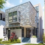 The exterior is clad in variegated, fish scale like stainless steel shingles along with complimentary stucco and stained cedar. The interior main living, dining and kitchen spaces have over 12 foot high ceilings and polished concrete floors. The entire house will be conditioned with geothermal heating and air conditioning and will have many other energy saving features.