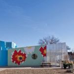WORKac has completed a new Kitchen Classroom and Half-Acre Garden at New York City’s first Edible Schoolyard in collaboration with Edible Schoolyard NYC. At P.S. 216, the Arturo Toscanini School in Gravesend, Brooklyn, a half-acre of the existing parking was transformed into a thriving organic garden. To ensure a true four-seasons garden experience for the students, WORKac incorporated a greenhouse together with the indoor kitchen classroom in Gravesend to allow classes to continue through the winter. The building is composed of three major components, each of which is articulated through the use of different materials: the greenhouse is a polycarbonate and aluminum structure; the steel-framed kitchen classroom is clad in a pixilated pattern of colored shingles; and a “Systems Wall” at the rear is articulated as a series of playful volumes covered in a bright blue rubber coating.