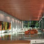 panels and striking west façade of thin, reedlike aluminum screens, the