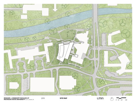 Located within the heart of the university along the Red Cedar River, the massing and geometry of the building complete the sequence of spaces in the college’s existing facilities while creating a new connection to the river walk. A riparian meadow is designed to both manage storm water and reestablish a natural habitat along the Red Cedar River.