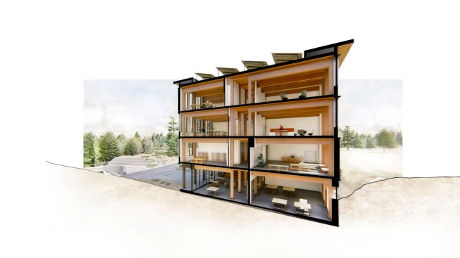 The new 50,000 gsf STEAM building on the growing Oregon State University – Cascades campus in Bend, Oregon will serve as the prototype for future net-zero campus expansion, beginning implementation of OSU’s Long-Range Development Plan and providing an adaptable and scalable framework for future buildings. The design, with a daylight-tuned façade and plans to incorporate mass timber, will solidify OSU Cascades’ identity in Bend. Informed by the unique topography of its site, the building’s dynamic indoor/outdoor environment will support numerous activities and events, engaging people through classroom, laboratory and maker spaces, as well as a formal amphitheater and an informal cascading plaza for gathering. Highly flexible interior academic spaces are organized on a modular grid, which will allow for future program adaptation and redistribution, as well as potential off-site construction of building elements.