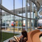 The ovoid geometry propagates toward the central courtyard’s glazed