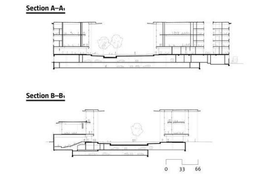 plan. On the ground floor, these drum-like elements house a coffee shop