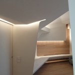 To make the most of the surface, using the smallest amount of money they also decided to use plasterboard panels, a poor material but adapt to complex shapes; the purpose of the project is to create a fluid space despite the rigid perimeter surfaces.