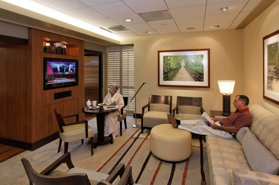 The Coachella Valley has long been a retreat for prominent movie stars and politicians, many of whom are accompanied by a sizable entourage. As part of Eisenhower Medical Center’s commitment to providing a campus-wide therapeutic and healing environment, Moon Mayoras designed the Greg and Stacey Renker Pavilion (Renker Pavilion) to provide discreet care for prominent dignitaries, politicians, celebrities, and other highly visible individuals requiring privacy as an essential element of their healing process.