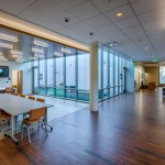 The safety and security of patients and staff was a primary concern for ECH, and influenced every decision throughout the design process. The building limits blind corners and any fixtures or elements that could be used for self-harm or the harm of others. Patient rooms are designed with custom doors that can be removed within less than a minute in case patients are in danger in their private rooms. Window glazing is polycarbonate or laminated safety glazing to prevent shattering, and all screws and fasteners are tamper-proof. Design masks the prevalence of these safety measures to make the Taube Pavilion a welcoming and warm environment for patients.