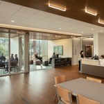 Lining the southern perimeter of the facility, the care suites are residential and hospitality driven in character, with rich materials and soothing colors to support the therapeutic program goals. One strategy used to assist in the stabilization of patients who are undergoing inpatient treatment is the specification of light fixtures and timed controls that permit color temperature to subtly change over the course a 24-hour period. Research indicates that this provision enhances natural circadian rhythms, assisting in the stabilization of moods and sleep patterns that are often disrupted due to mental illness.