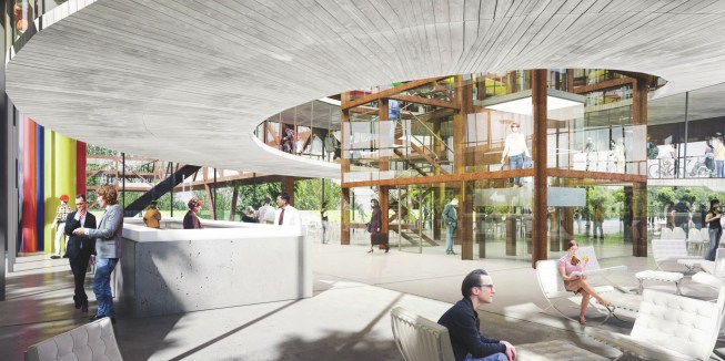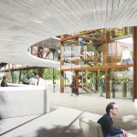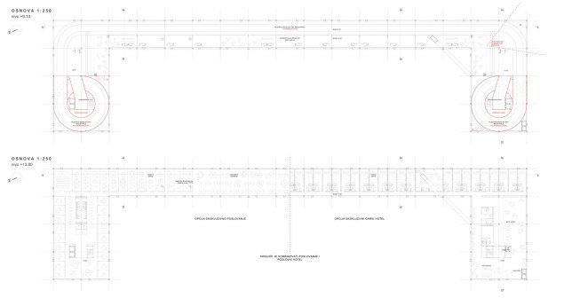 The vortex of unclimatized ramps pass trough climatized exclusive hall on one side and climatized fitness on the other are the main motif of the concept.